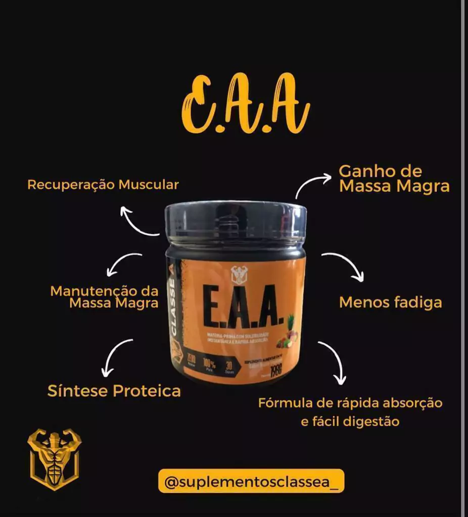 Você está em busca de um suporte eficaz para a recuperação muscular? Conheça o E.A.A Classe A, o suplemento ideal para quem deseja desenvolver massa muscular e otimizar seus treinos!