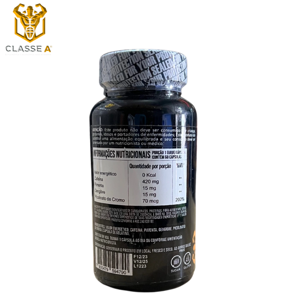 ✅ Aumento da queima de gordura ✅ Energia intensa durante os treinos ✅ Acelera o metabolismo ✅ Composição rica em cafeína, pimenta e gengibre ✅ Contém cromo para auxiliar no controle da glicose